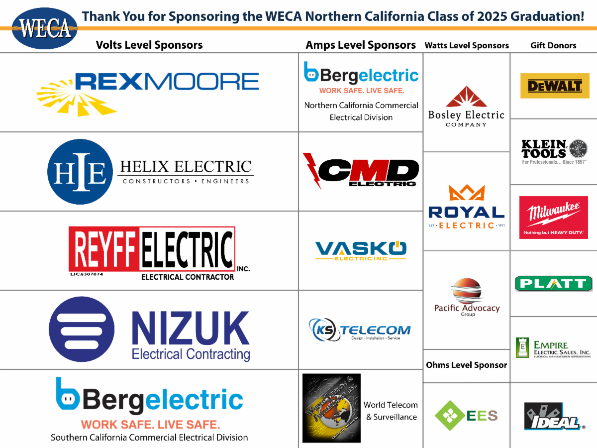Please join us in congratulating Brent Sisson, the WECA Northern California Class of 2025 Low Voltage Apprenticeship Valedictorian, on his accomplishment!