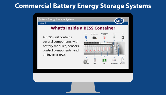This course is part of WECA's Comprehensive BESS: Residential and Commercial Energy Storage Systems (32 hour) course, which is also an elective in the WECA Electrician Trainee Certificate Path.
