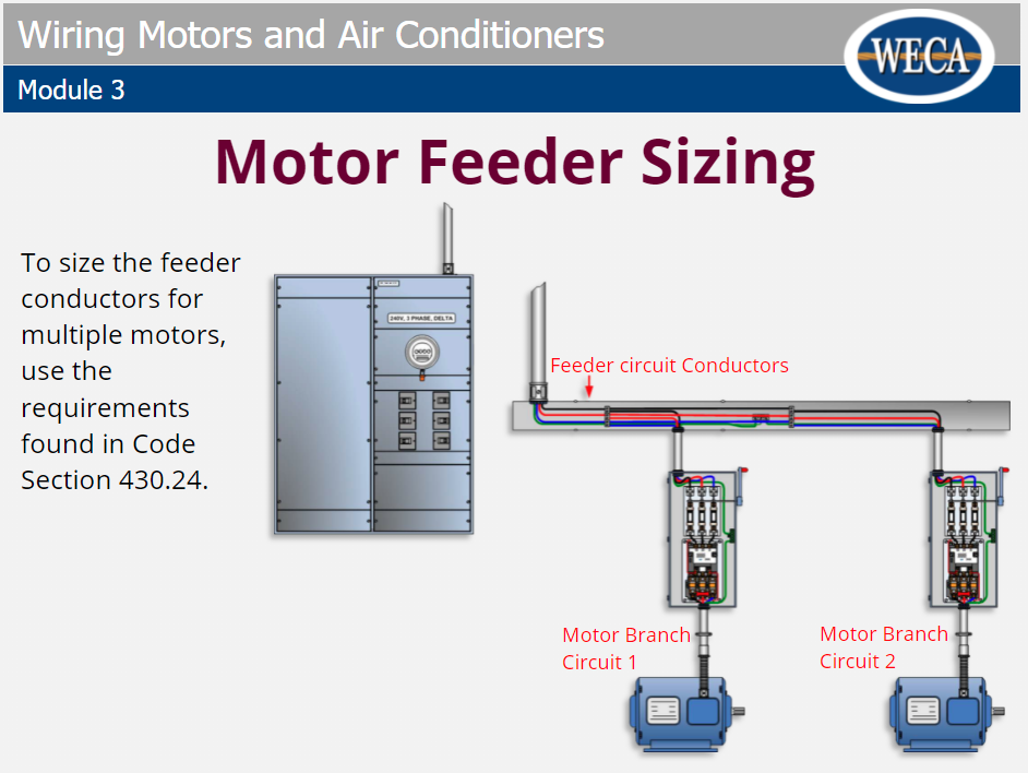 In this course, electricians learn how size single motor circuits for electrical installation. First, electricians learn about motors, their components, how motors function, and NEC requirements for sizing single motor circuits. Then, they practice all steps needed to accurately perform single motor circuit calculations for three different scenarios.