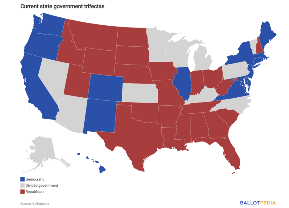 Spanberger’s victory, combined with Democrats holding their majority in the House of Delegates, created a new Democratic trifecta in the state. Once Spanberger is sworn in, Virginia will be one of 16 Democratic trifectas. Nationally, following the 2025 elections, there will be 16 Democratic trifectas, 23 Republican trifectas, and 11 divided governments.